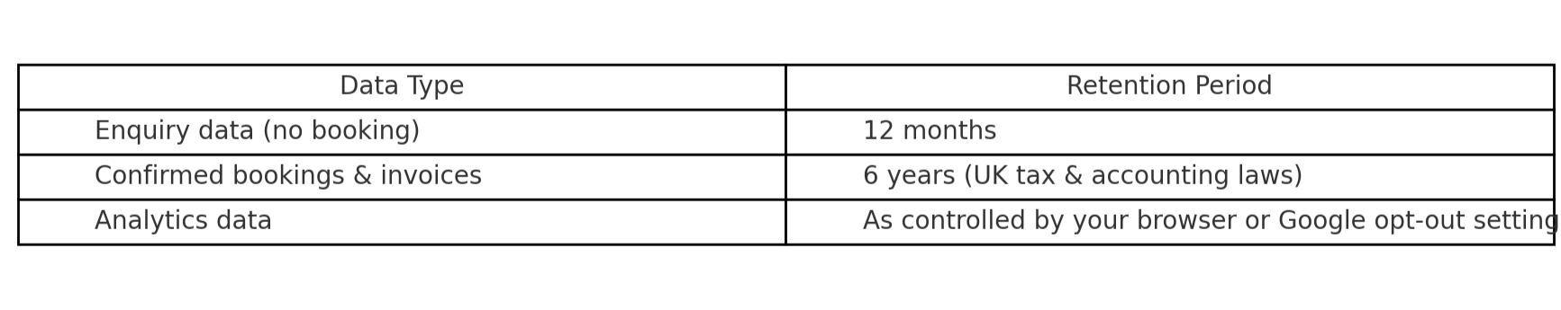 Some providers store data outside the UK/EU (e.g., in the US). When this happens, we ensure legal safeguards like standard contractual clauses are in place to protect your data.